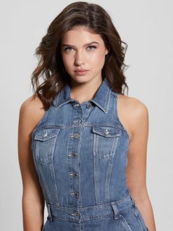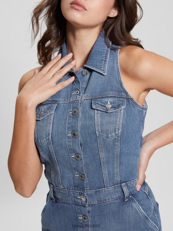 GUESS נשים שמלת ג’ינס אקולוגית סטייסי F8RV201 לבוש עָדִין