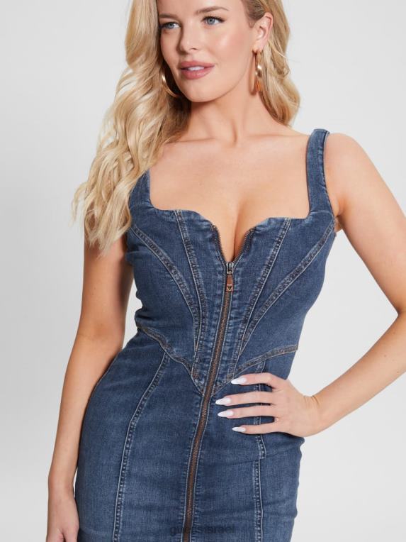 GUESS נשים שמלת ג’ינס לילאמור אקולוגית F8RV206 לבוש קארי אמצע