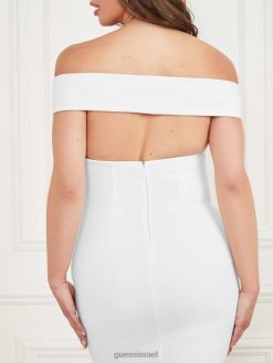GUESS נשים שמלת דליה מחוץ לכתף F8RV577 לבוש פנינה חיוורת
