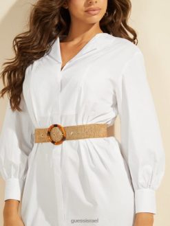 GUESS נשים שמלת חולצה של טרופה F8RV680 לבוש לבן אמיתי