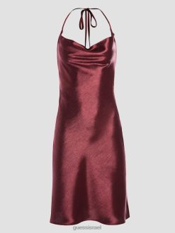 GUESS נשים שמלת טארין עם צווארון F8RV817 לבוש יין מיסטי
