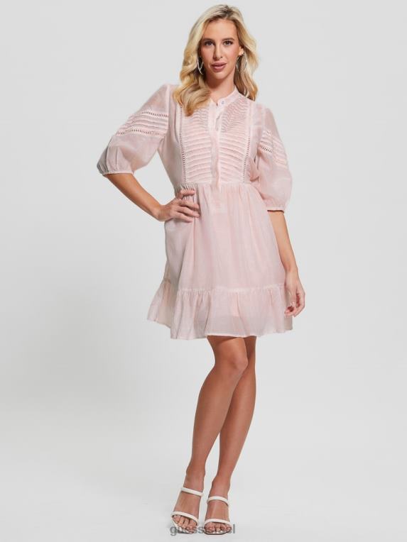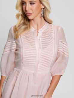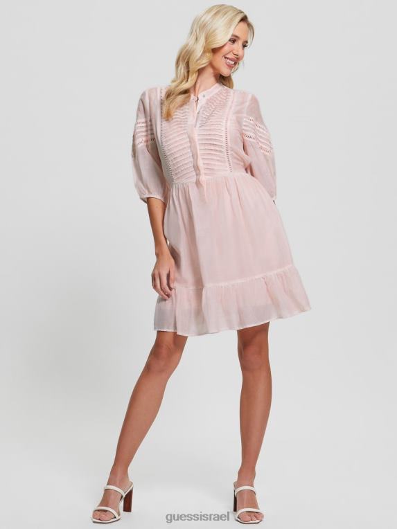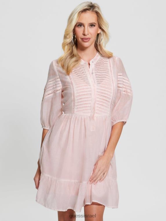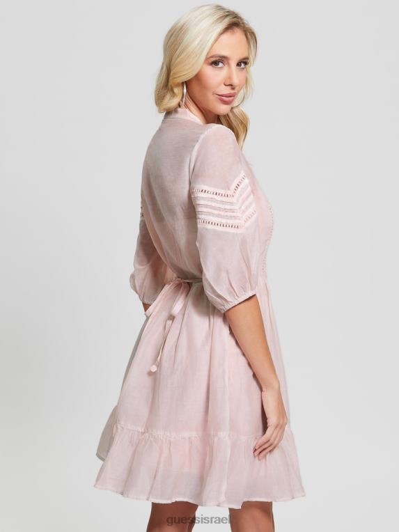 GUESS נשים שמלת מיה בתערובת משי F8RV501 לבוש מולטי ורוד רגוע