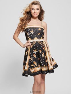 GUESS נשים שמלת מיני של אנדרייאן F8RV546 לבוש הדפס מעטפת שחור