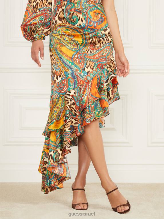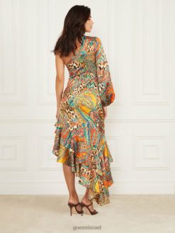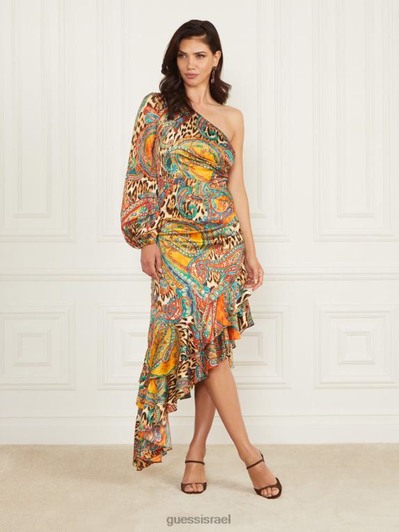 GUESS נשים שמלת מלמלה של טרישה F8RV697 לבוש הדפס עוף החול