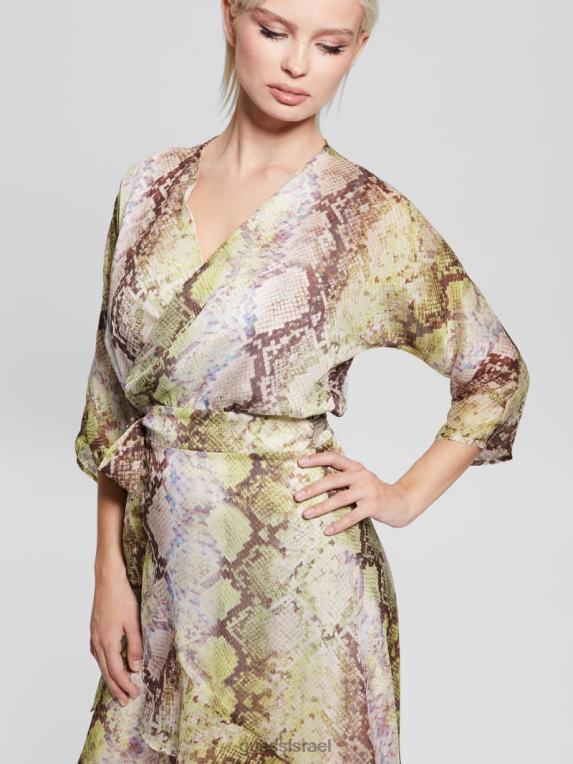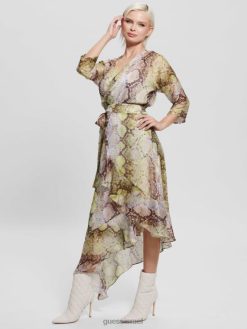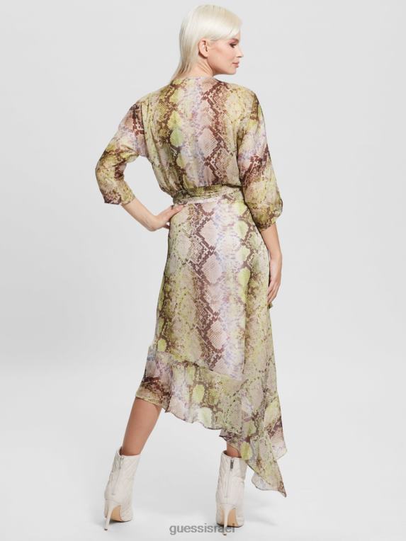 GUESS נשים שמלת מעטפת אקו אנסלי F8RV686 לבוש הדפס נחש גלאם