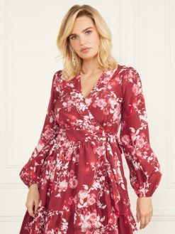 GUESS נשים שמלת מעטפת בתנוחת כותרת F8RV691 לבוש תנוחת כותרת ריבה כהה