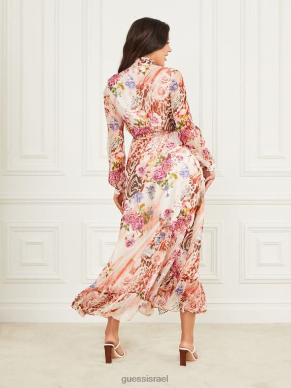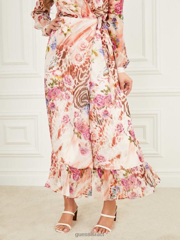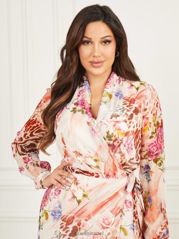 GUESS נשים שמלת מעטפת משי ורד F8RV745 לבוש הדפס צללית ורד