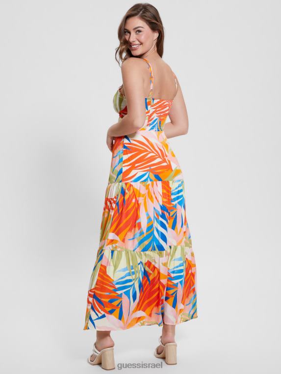 GUESS נשים שמלת מקסי טרופית מודפסת F8RV430 לבוש הדפס הוואנה