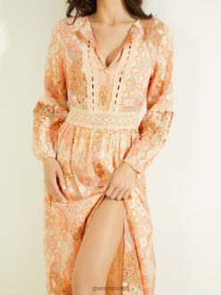 GUESS נשים שמלת מקסי לורל F8RV880 לבוש הדפס פז פייזלי