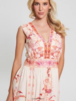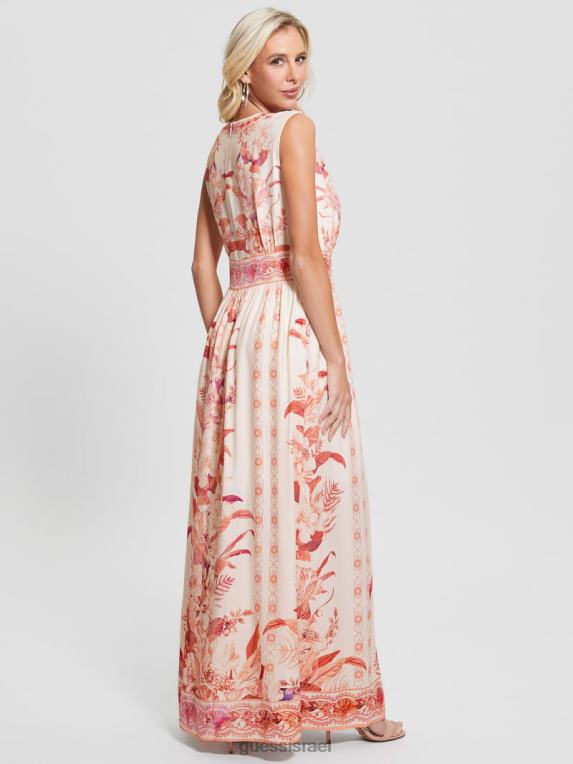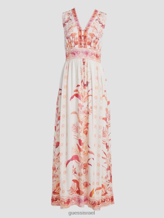 GUESS נשים שמלת מקסי מודפסת של גיזל F8RV435 לבוש כבש מחדש את הרומנטיקה