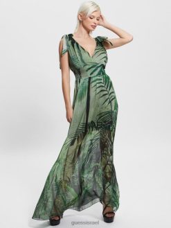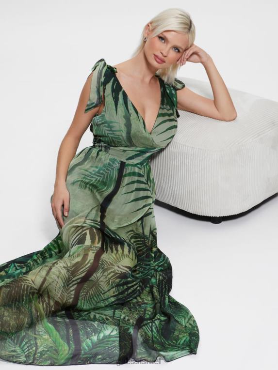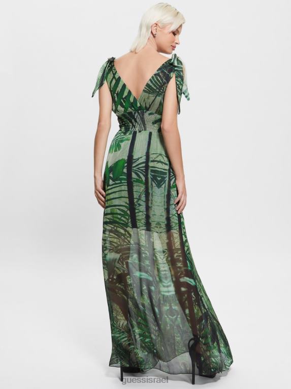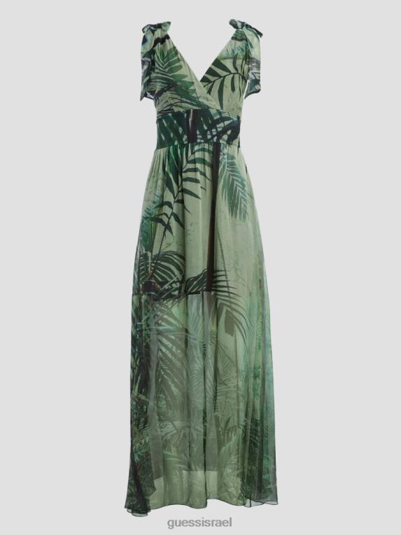 GUESS נשים שמלת מקסי מעוטרת ונוס F8RV607 לבוש יער גשם