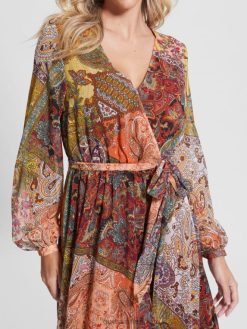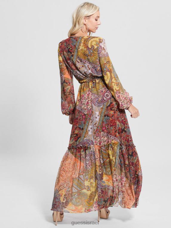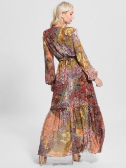 GUESS נשים שמלת מקסי של אוריין F8RV774 לבוש הדפס פייזלי שדות