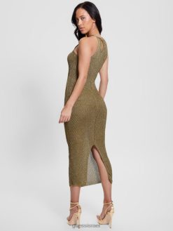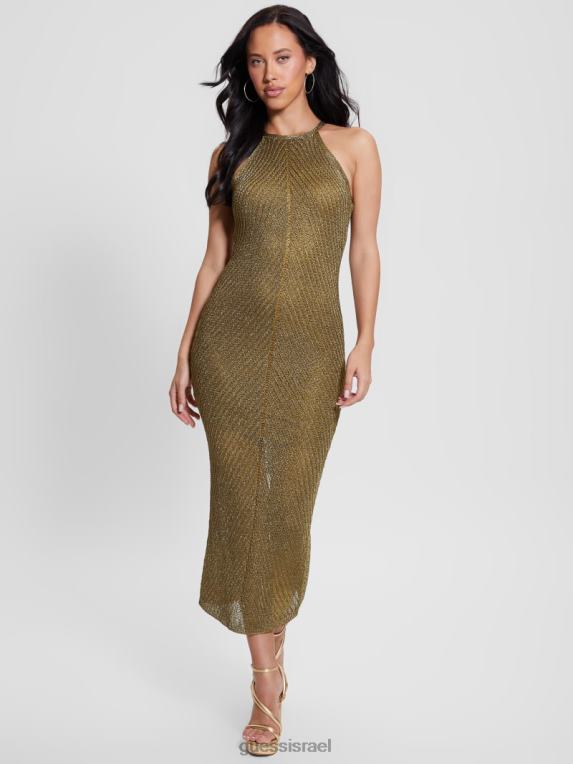 GUESS נשים שמלת מקסי של אלקסי לורקס F8RV370 לבוש מולטי זהב שחור