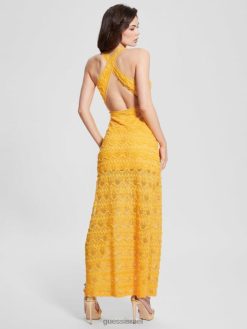 GUESS נשים שמלת מקסי של ליזה תחרה F8RV482 לבוש לגונה צהוב
