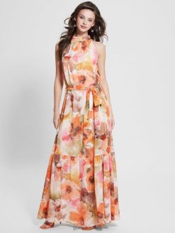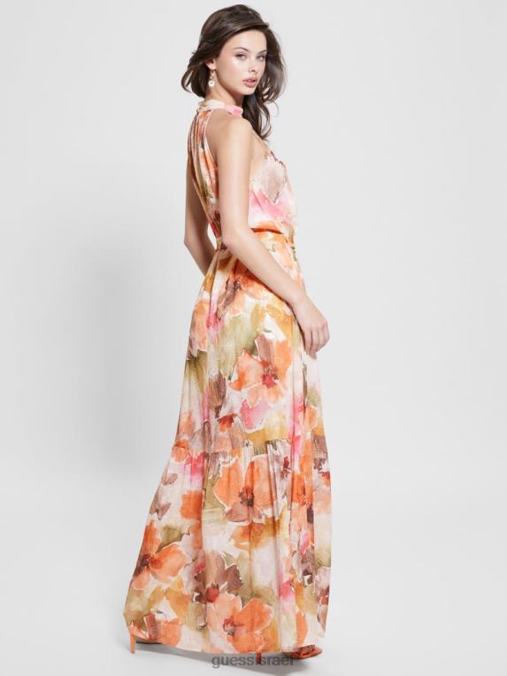 GUESS נשים שמלת מקסי של katia halter F8RV514 לבוש הדפס אקוורל בלום