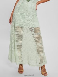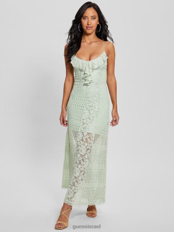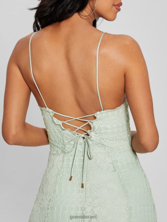 GUESS נשים שמלת מקסי תחרה קלי F8RV309 לבוש רב שרך מאובק