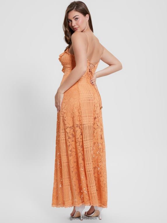 GUESS נשים שמלת מקסי תחרה קלי F8RV386 לבוש אפרסק מתוק