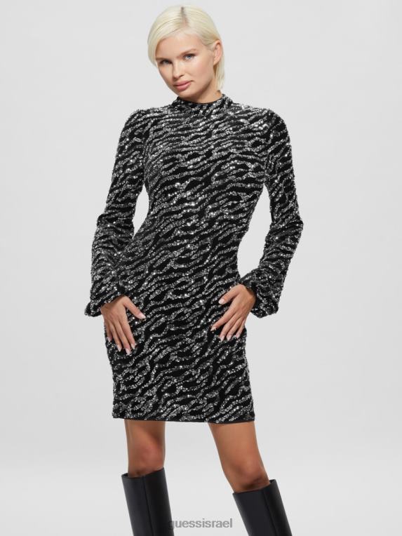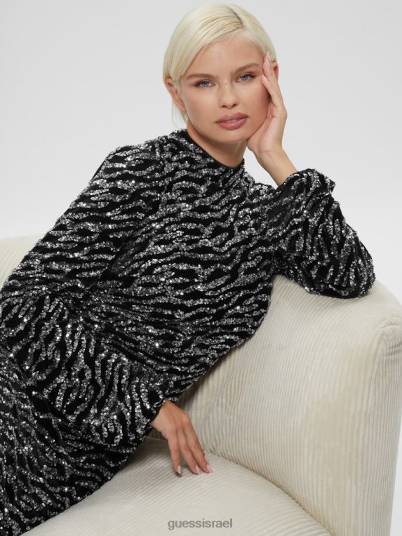 GUESS נשים שמלת נצנצים של זואי F8RV727 לבוש כסף רב