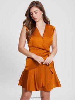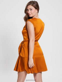 GUESS נשים שמלת סאטן אקולוגית של מרלן F8RV378 לבוש פריחת הסתיו