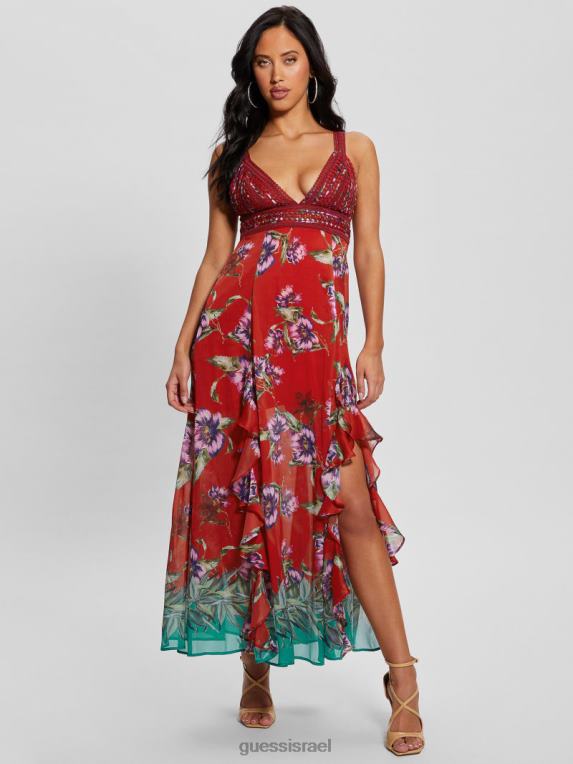 GUESS נשים שמלת סרינה אקולוגית F8RV373 לבוש גבול טרזה