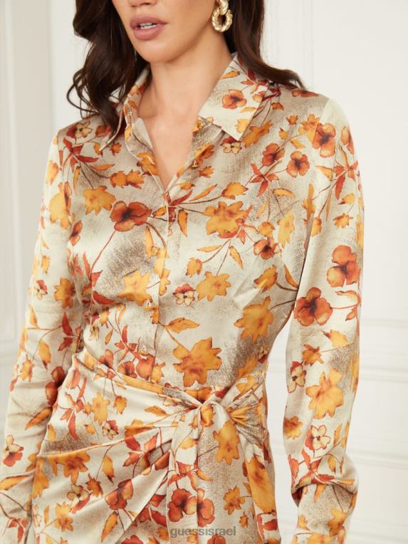 GUESS נשים שמלת סתיו בין ערביים F8RV825 לבוש הדפס סתיו בין ערביים