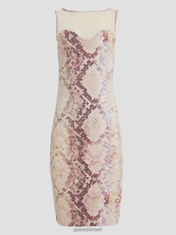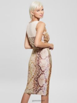 GUESS נשים שמלת עור נחש של אמנדה F8RV595 לבוש הדפס נחש גלאם