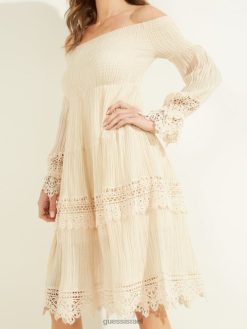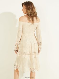 GUESS נשים שמלת ענבר מחוץ לכתף F8RV790 לבוש גלידת חמאה