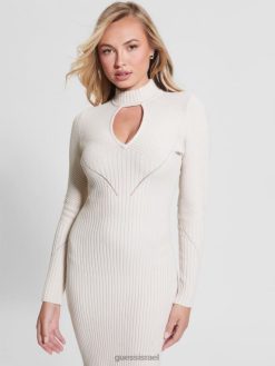 GUESS נשים שמלת צווארון מדומה טטיה אקולוגית F8RV868 לבוש מולטי אוף לבן