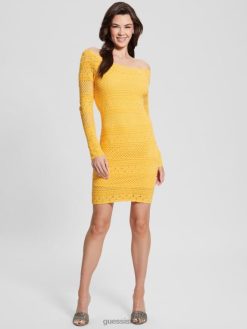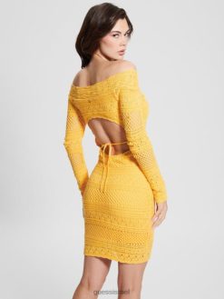GUESS נשים שמלת קרושה אמלי אקולוגית F8RV550 לבוש לגונה צהוב
