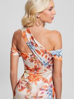 GUESS נשים שמלת רצועה מעוותת של מלורי F8RV566 לבוש גן השקיעה