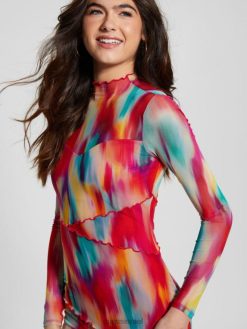 GUESS נשים שמלת רשת אקו ג’מה F8RV323 לבוש החיים מהירים