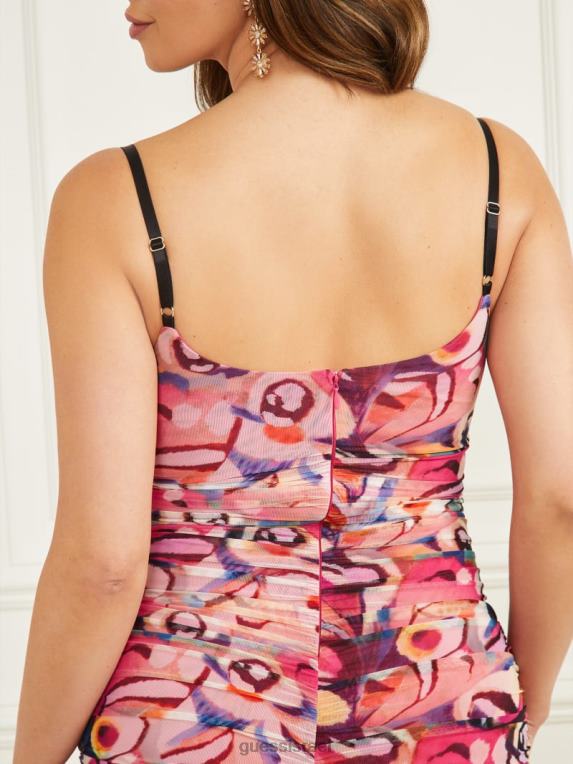 GUESS נשים שמלת רשת פלאות F8RV541 לבוש הדפס ארץ הפלאות