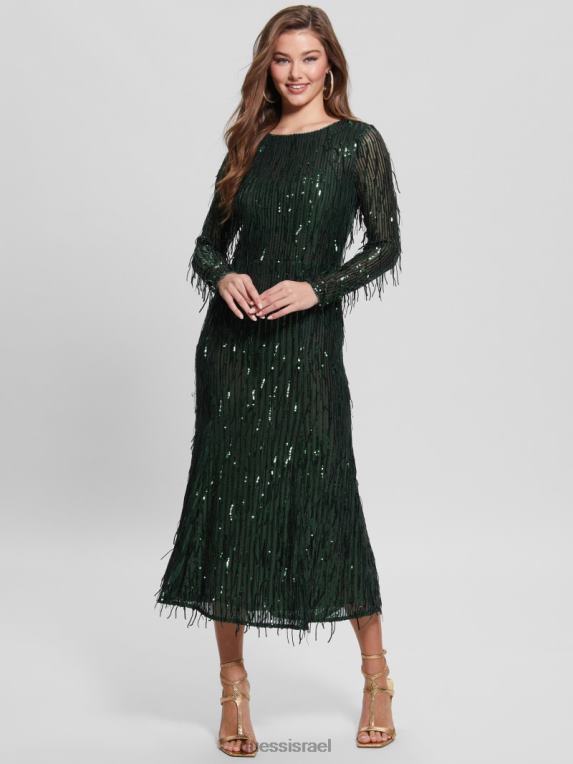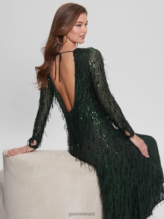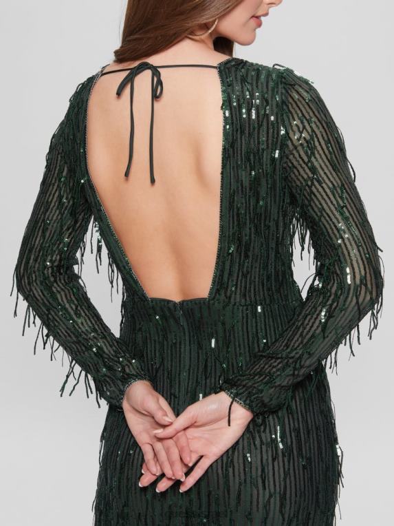 GUESS נשים שמלת שוליים נצנצים של elodie F8RV688 לבוש טחב מחצלת מולטי