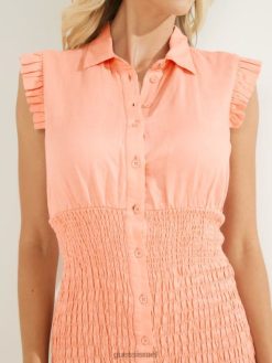 GUESS נשים שמלת תאודורה אקולוגית F8RV915 לבוש קרם אפרסק