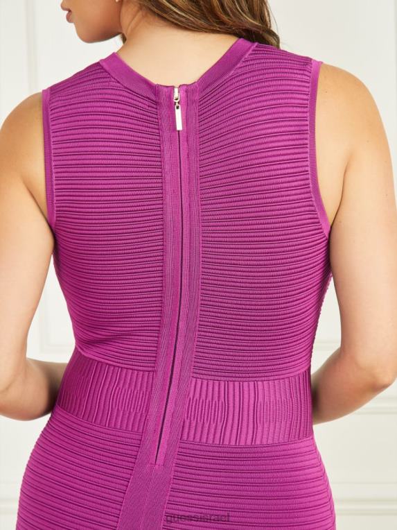 GUESS נשים שמלת תחבושת של מייבל F8RV413 לבוש פרח סגול