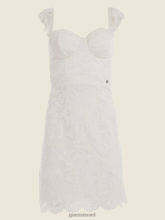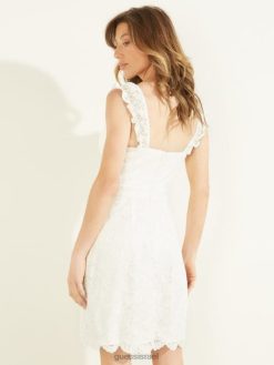 GUESS נשים שמלת תחרה של כריסטל F8RV863 לבוש לבן טהור
