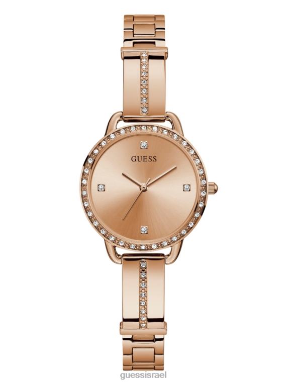 GUESS נשים שעון אנלוגי קריסטל F8RV3595 אבזר ורוד זהב