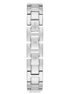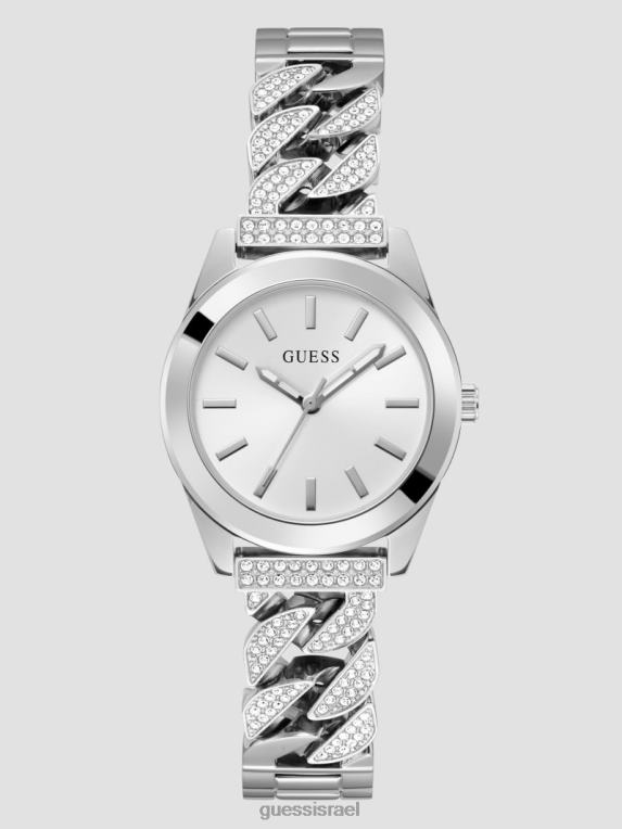GUESS נשים שעון אנלוגי של שרשרת אבן קריסטל F8RV3577 אבזר כסף