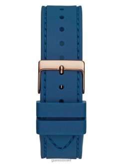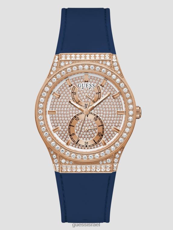 GUESS נשים שעון קריסטל סיליקון רב תכליתי F8RV3612 אבזר בגוון ורד זהב וכחול