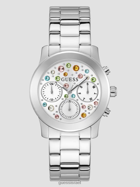GUESS נשים שעון קריסטל צבעוני רב תכליתי F8RV3549 אבזר כסף