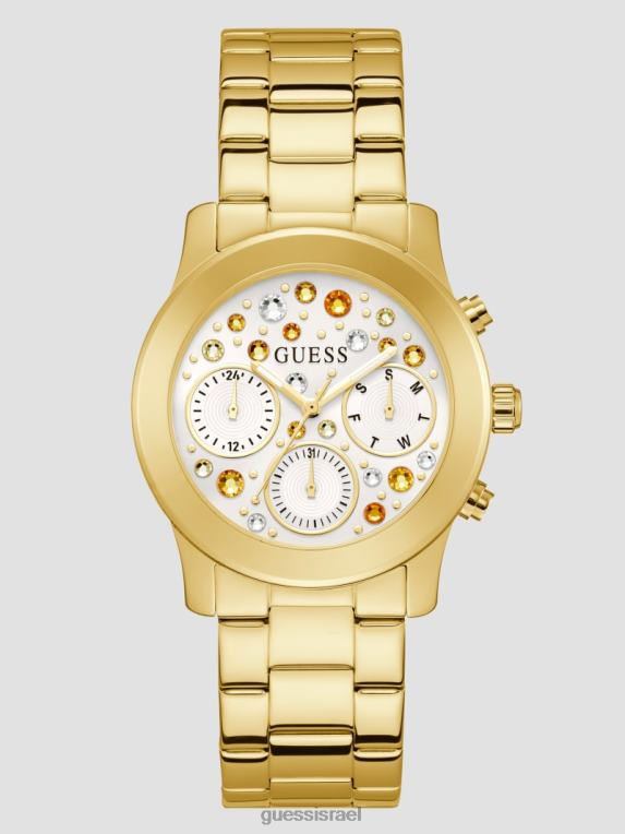GUESS נשים שעון קריסטל רב תכליתי F8RV3576 אבזר זהב