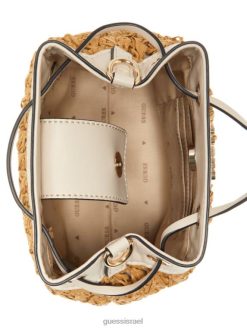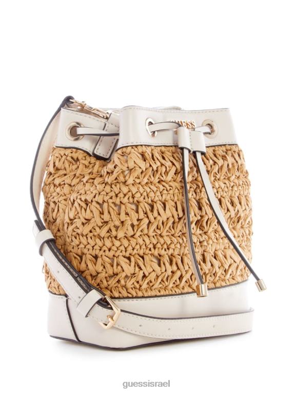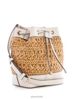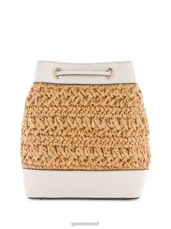 GUESS נשים שקית דלי קש סרוגה ליגוריה F8RV2954 תיקים לבן