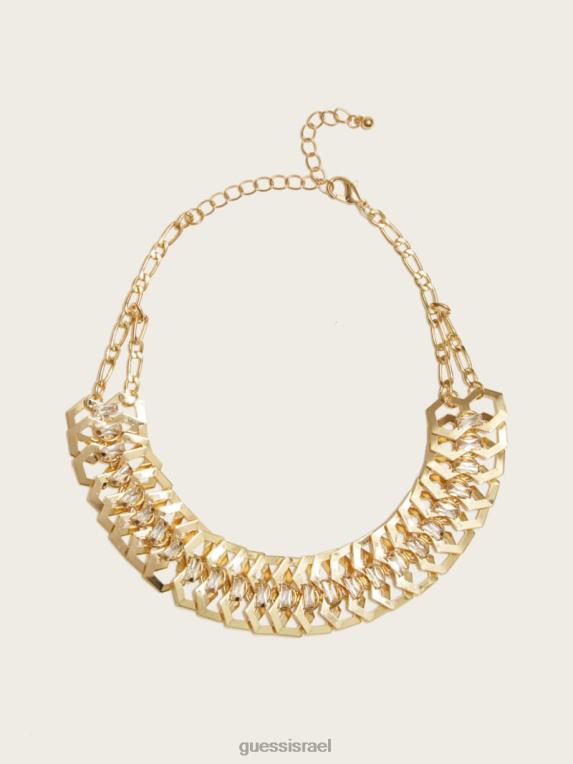 - שרשרת בגוון זהב הכוללת עיצוב שרשרת משושה כפולה עם גבישי זירקוניה בחיתוך בגט במרכז