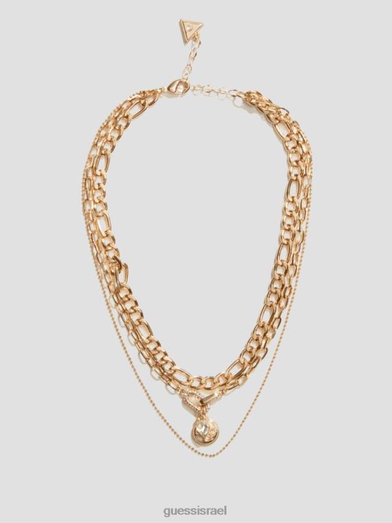 GUESS נשים שרשרת שכבות קסם לוגו F8RV3851 אבזר זהב