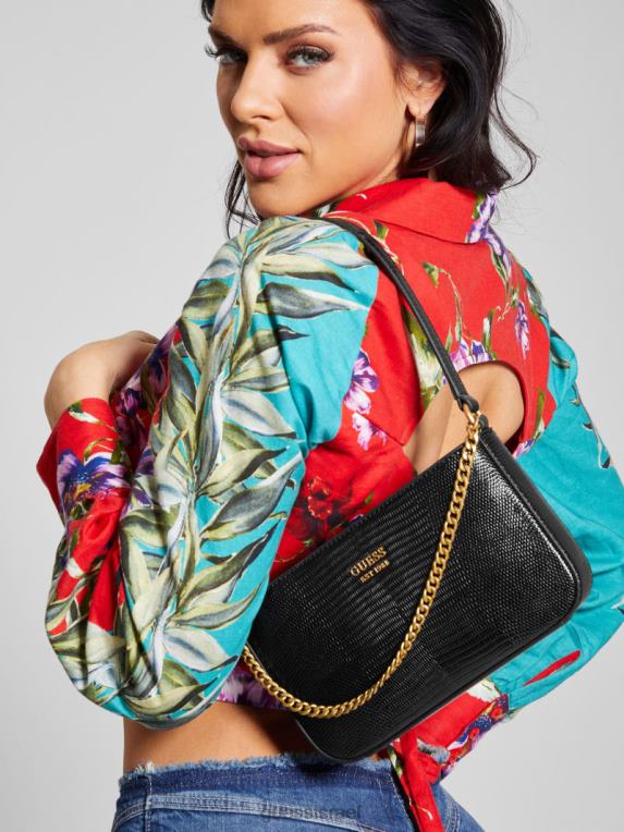 GUESS נשים תיק כתף מיני לטאה קייטי F8RV3013 תיקים הדפס פרחוני שחור