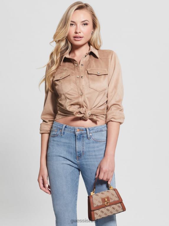 GUESS נשים תיק מיקרו מיני לוגו סטפי ג’קארד F8RV2781 תיקים חום