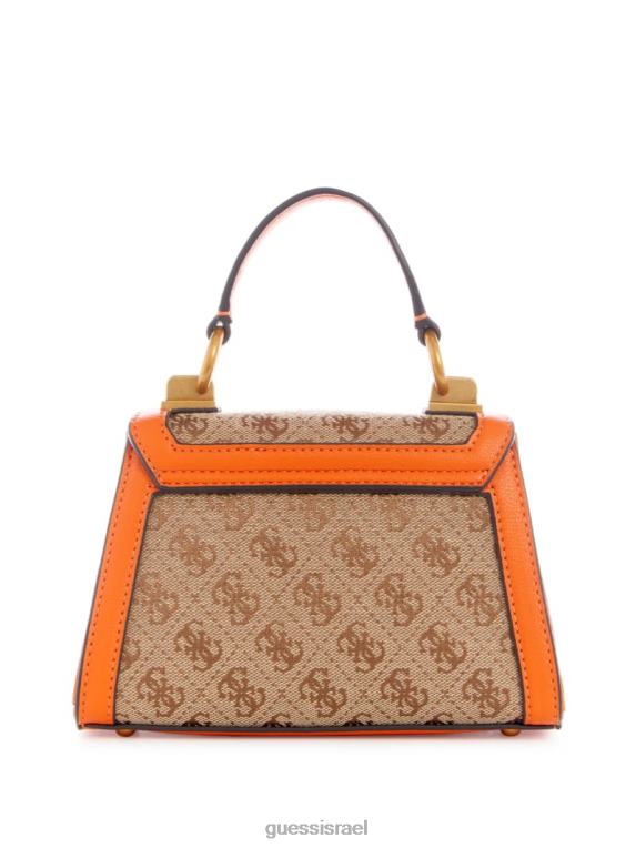 GUESS נשים תיק מיקרו מיני לוגו סטפי ג’קארד F8RV2983 תיקים לוגו לאטה/כתום