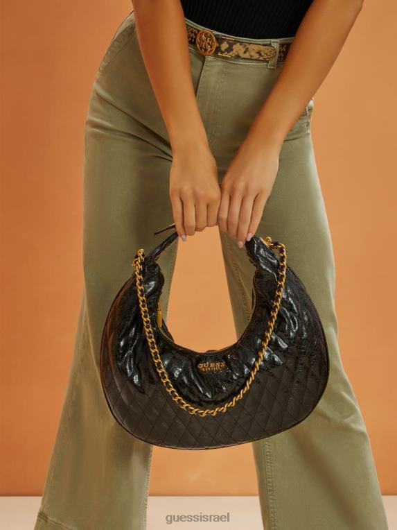 GUESS נשים תיק נווד מרופד Dema F8RV3032 תיקים הדפס פרחוני שחור