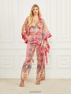 GUESS נשים avah ארוג קרופ טופ F8RV1150 לבוש גל אביבי ורוד