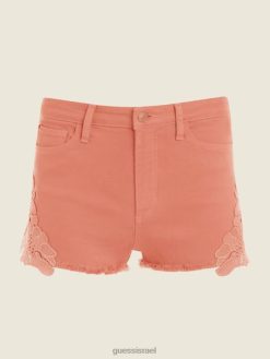 GUESS נשים מכנסיים קצרים רקומים משנת 1981 F8RV247 לבוש אפרסק ברולה מולטי
